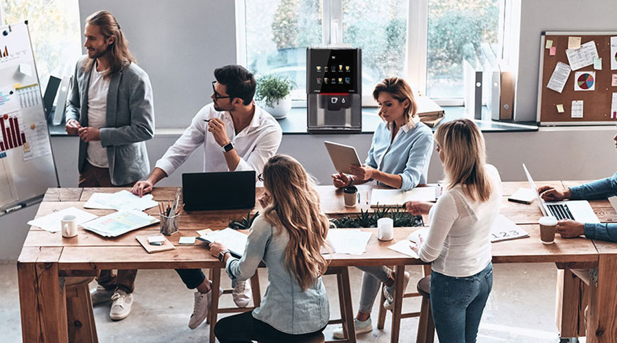It is suitable for all commercial environments and offers five soluble canisters, in a very attractive and appealing surround. Finished in smoked glass the angular design with chrome finish trim provides a contemporary feel. The in-touch user interface is akin to many consumer electronic devices.