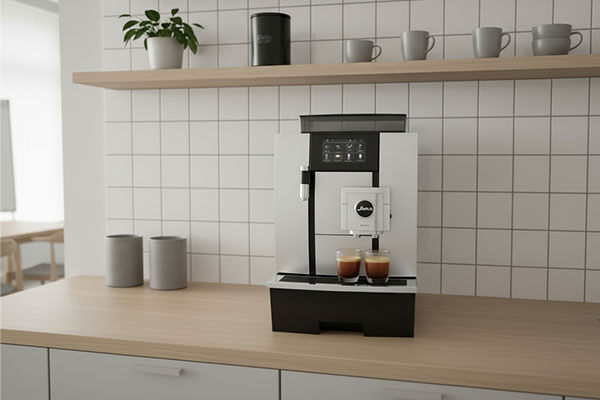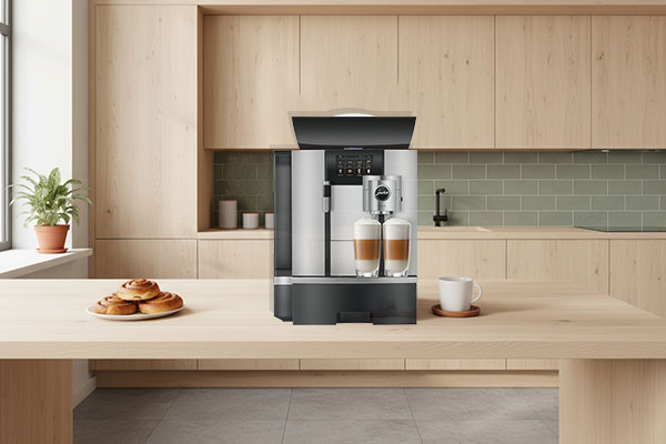Our Jura commercial coffee machine range offers everything needed by staff for coffee shop quality coffee, in a large office or break-out room.