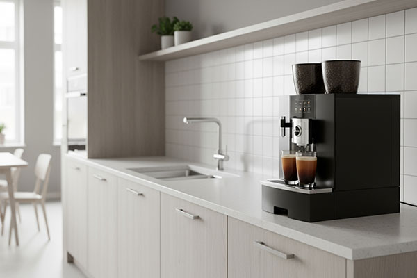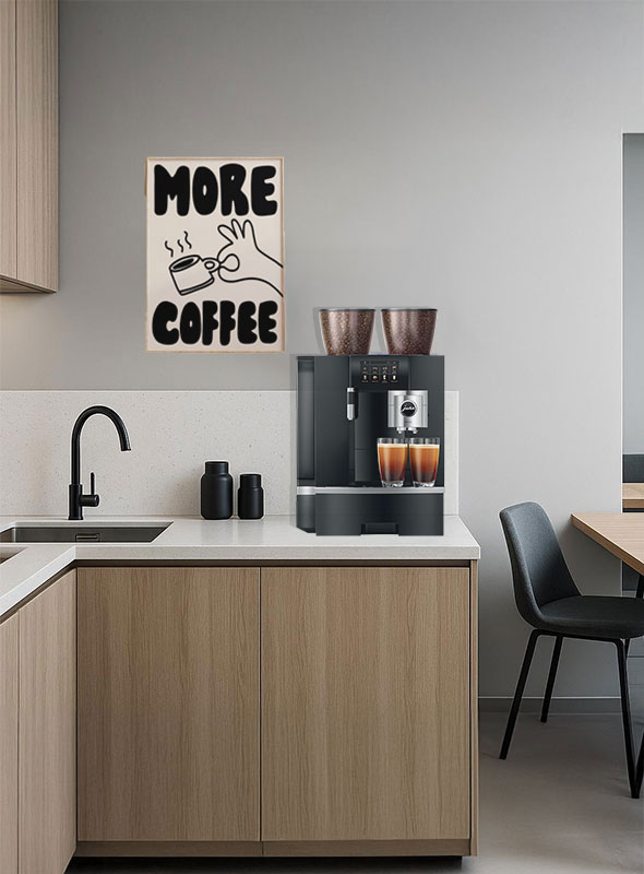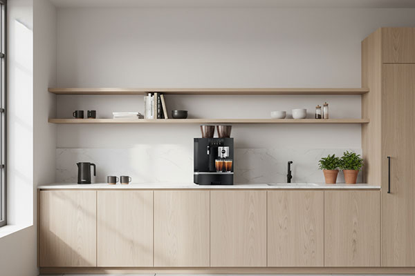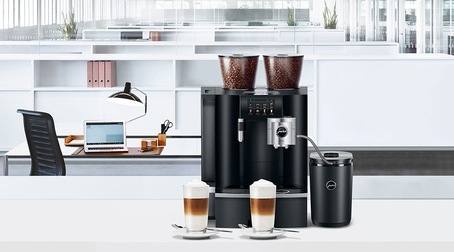 Our Jura commercial coffee machine range offers everything needed by staff for coffee shop quality coffee, in a large office or break-out room.